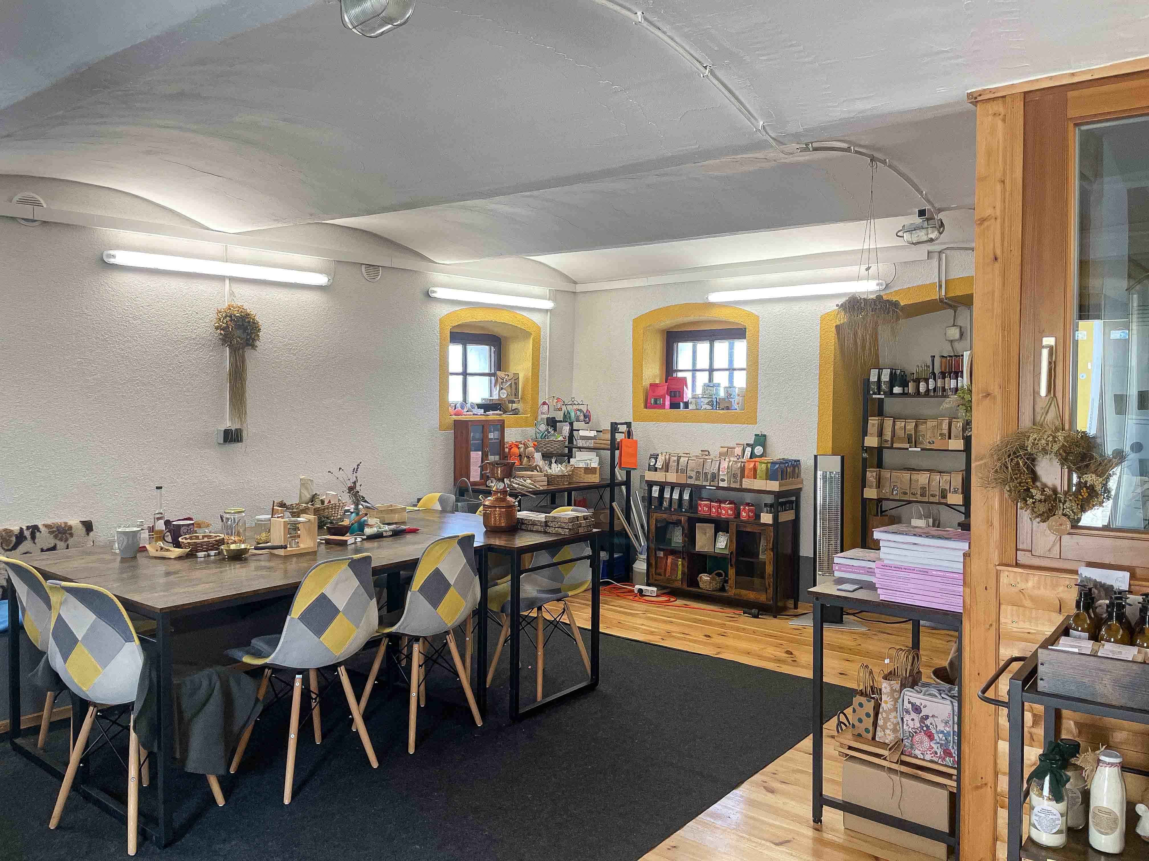 In unserem alten Stadl, in dem meine Oma noch Kühe, Pferd, Schweine, Hasen und Katzen versorgte, entstand 2022 unser Hofladen mit Workshop- und Produktionsraum. Im gepflasterten Hof habt ihr ausreichend Parkmöglichkeiten. Auf der Rückseite erwartet euch ein toller Ausblick auf den Pyramidenkogel und in meinen wilden Kräutergarten.