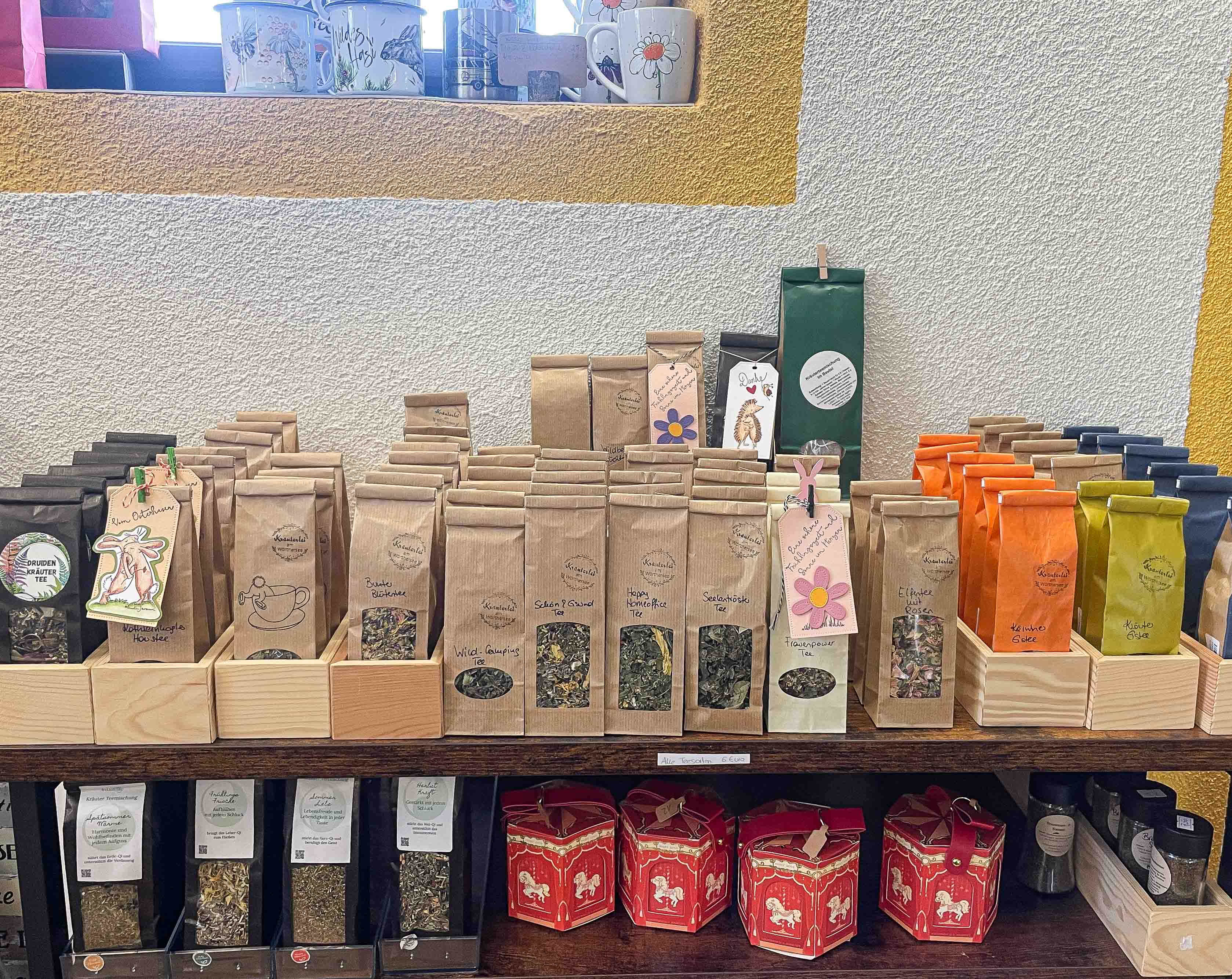 Unser Sortiment umfasst über 50 verschiedene Kräuterteemischungen, per Hand destillierte Aromasprays, Kräuterspezialitäten, Bücher und Räucherwerk aus Kärntner Kräutern. Da die Produkte saisonal stark wechseln und von manchen Produkten nur wenige Stück vorhanden sind, gibt es online nur einen Bruchteil zu bestellen. Der Hofladen hingegen ist immer gut bestückt.
